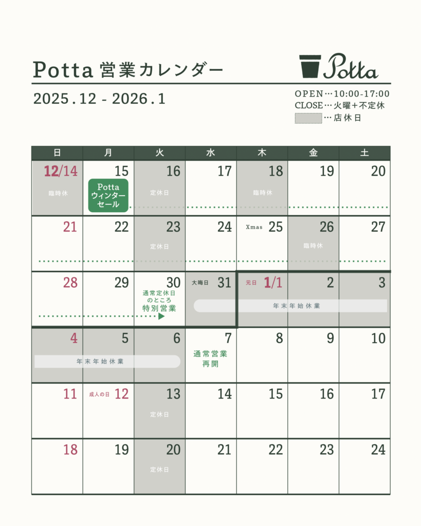 観葉植物と鉢 Potta(ポッタ) – ●新潟県柏崎市横山440-1 ハコニワ(ハコニワ入って左手奥) ⇒ハコニワHP ●TEL:0257-41-6477 ●FAX:0257-24-4056 – ●営業時間:10:00〜17:00 *2024年より閉店時間が変わりました ●定休日:火曜日